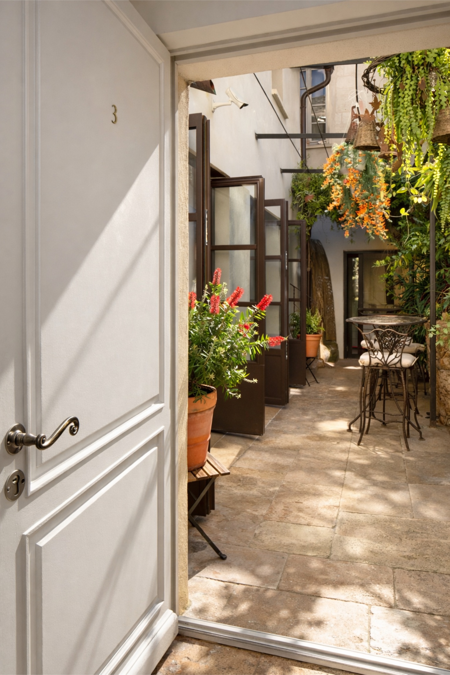 Située au rez-de-chaussée, avec vue et accès direct au jardin, la Suite Augustin dévoile sur 25 m² l’élégance discrète d’une adresse rare au cœur du centre historique d’Avignon. Prolongée par sa terrasse privée au sein du jardin méditerranéen, elle offre une atmosphère paisible où lumière naturelle, matières nobles et lignes harmonieuses composent un refuge intime, pensé pour vivre la Provence avec douceur et distinction.